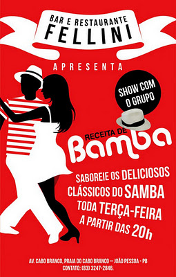 TERÇA-FEIRA, Dia 24/01 à partir das 22:00h *SAMBA DE MESA* Com RECEITA DE BAMBA.